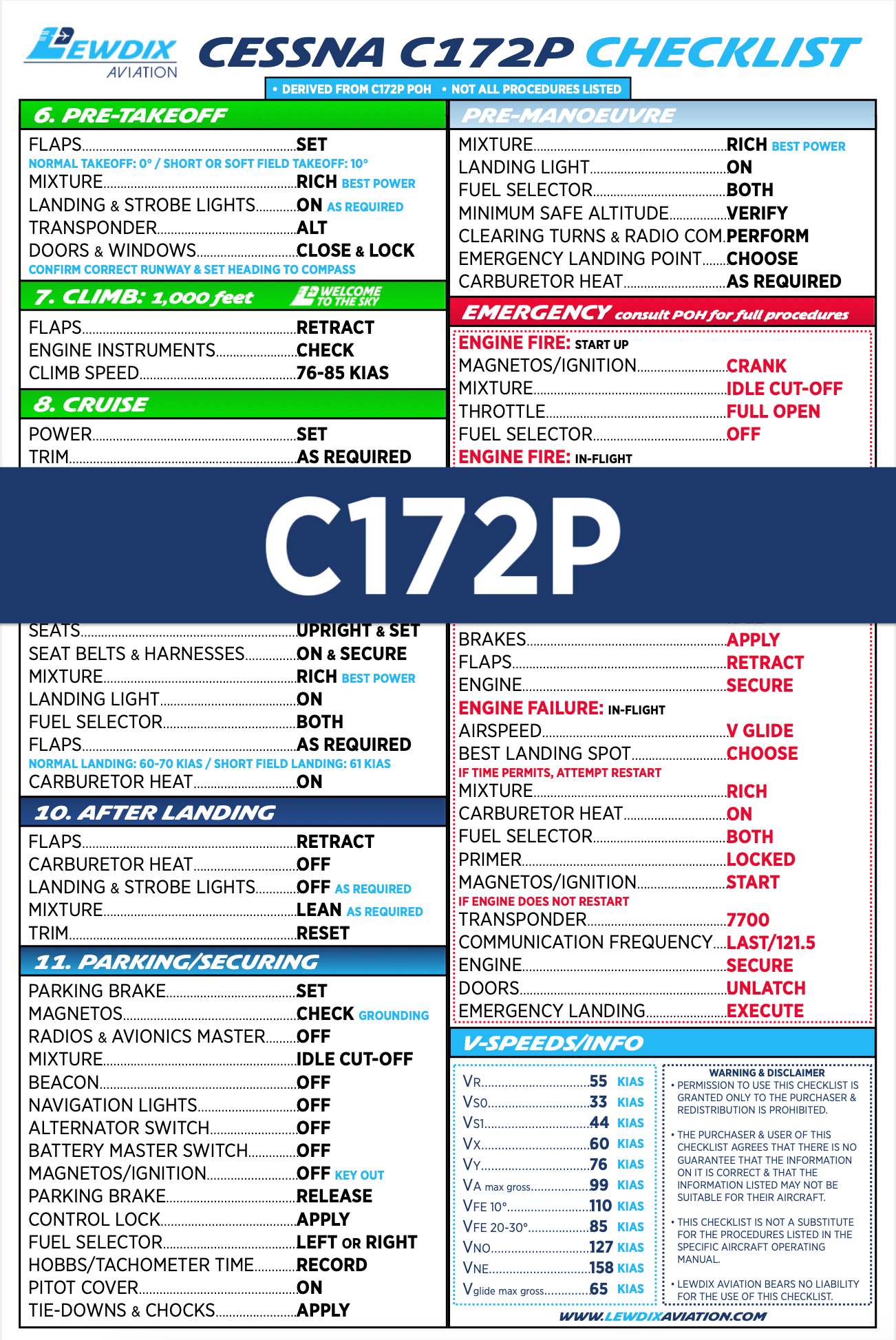 Every pilot needs a checklist and there's no better than a LewDix Aviation Checklist. Each list is derived from the POH of each aircraft and presented clearly on a sturdy, 6x9 card.