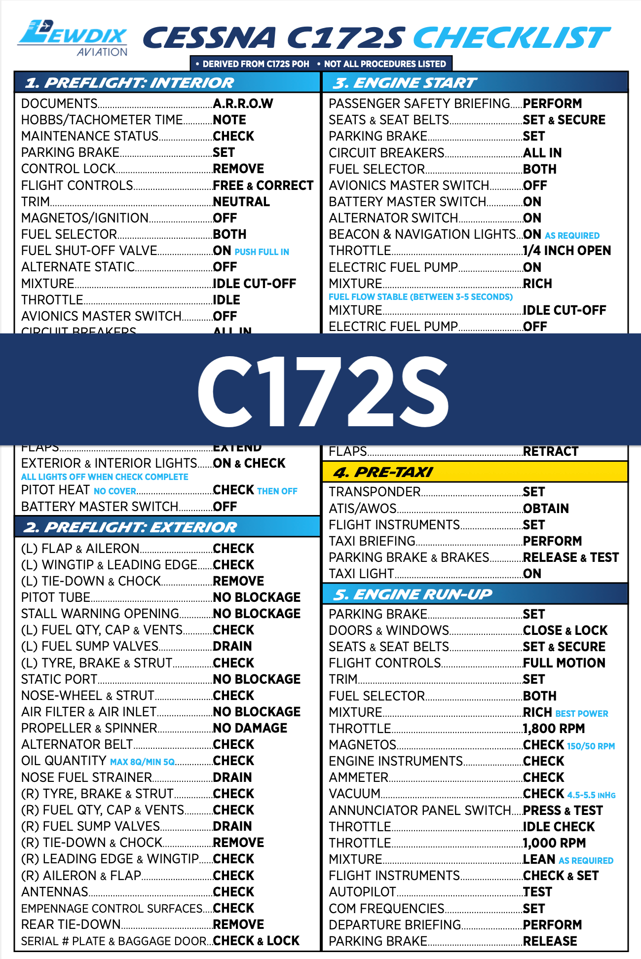 Every pilot needs a checklist and there's no better than a LewDix Aviation Checklist. Each list is derived from the POH of each aircraft and presented clearly on a sturdy, 6x9 card.